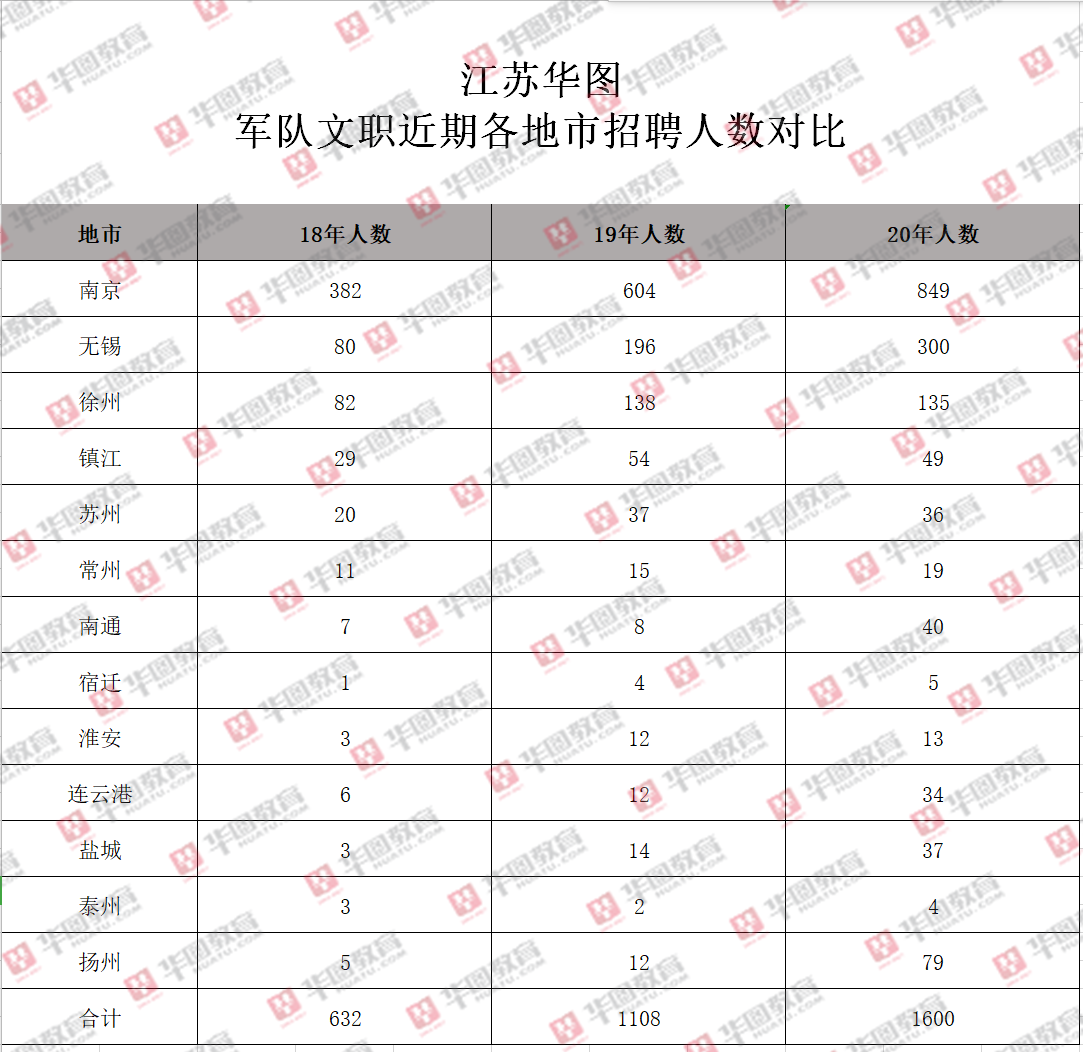 军队文职江苏近期各地市招录人数对比