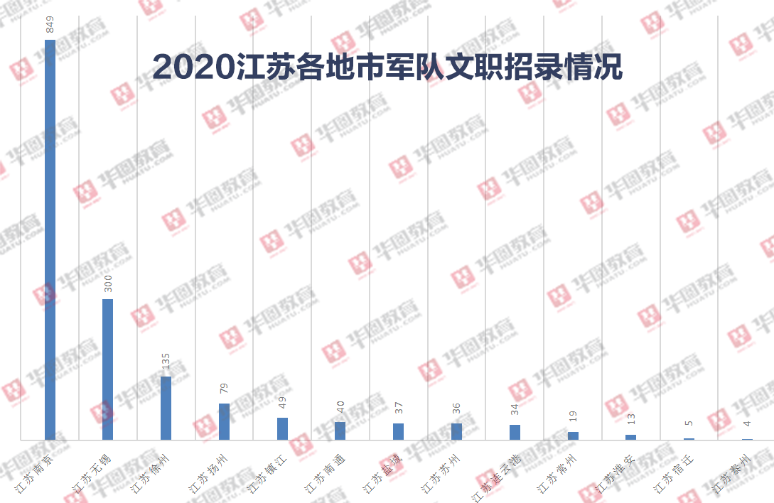 2020江苏各地市军队文职招录情况
