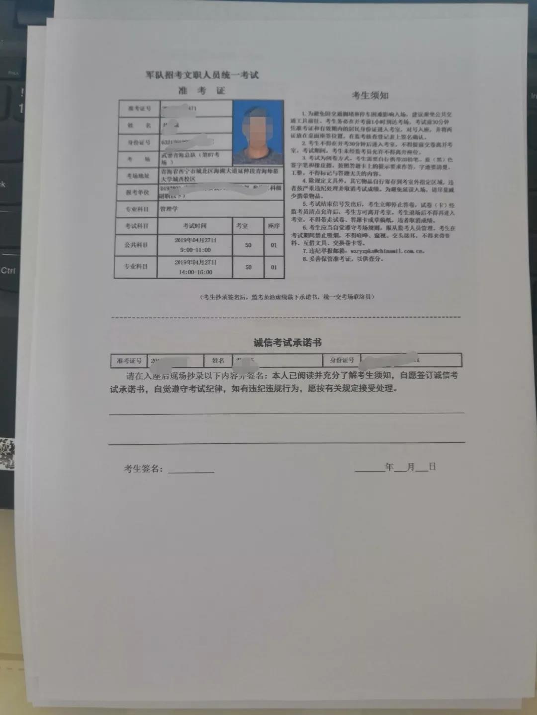 3.军队文职准考证可以多打印几份,除去在资格审查等环节用得上,考试时也可以作为草稿纸带入考场;