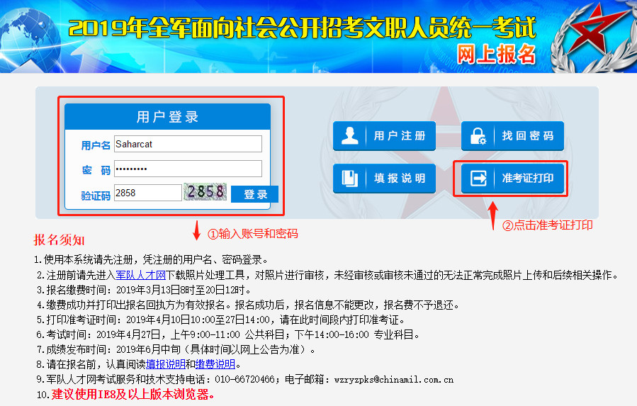2.军队文职准考证打印说明中,明确要求要调整为ie浏览器,因此建议大家使用ie浏览器进入网站打印准考证 ;