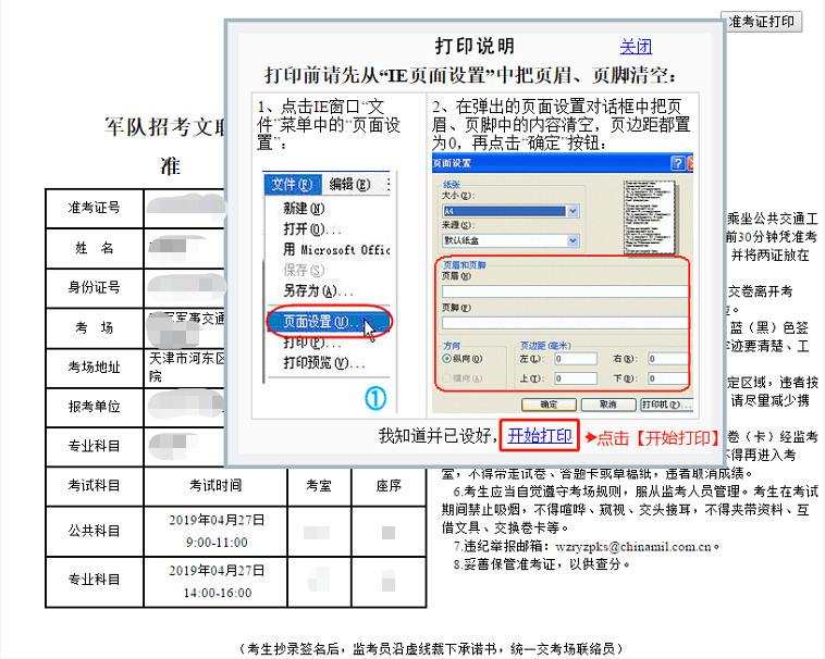 ⑥按照“打印说明”打印前请先从"ie页面设置”中把页眉、页脚清空;