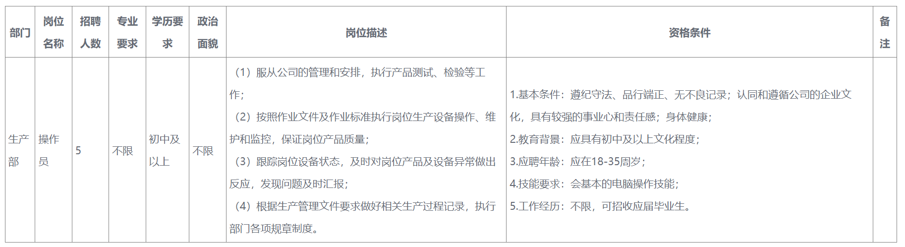 武汉九州芯技术有限公司关于招聘操作员的公告