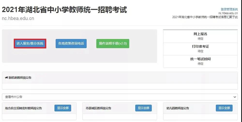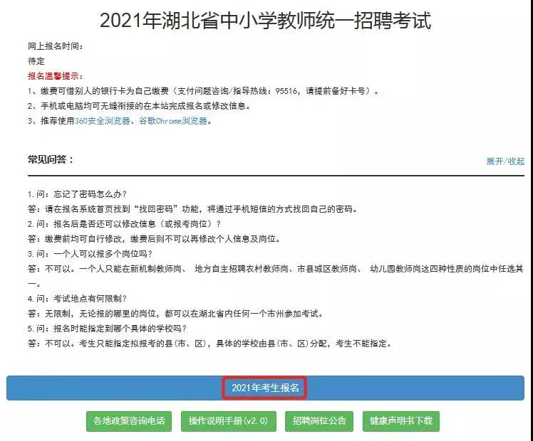 2021湖北中小学教师招聘报名入口已开通