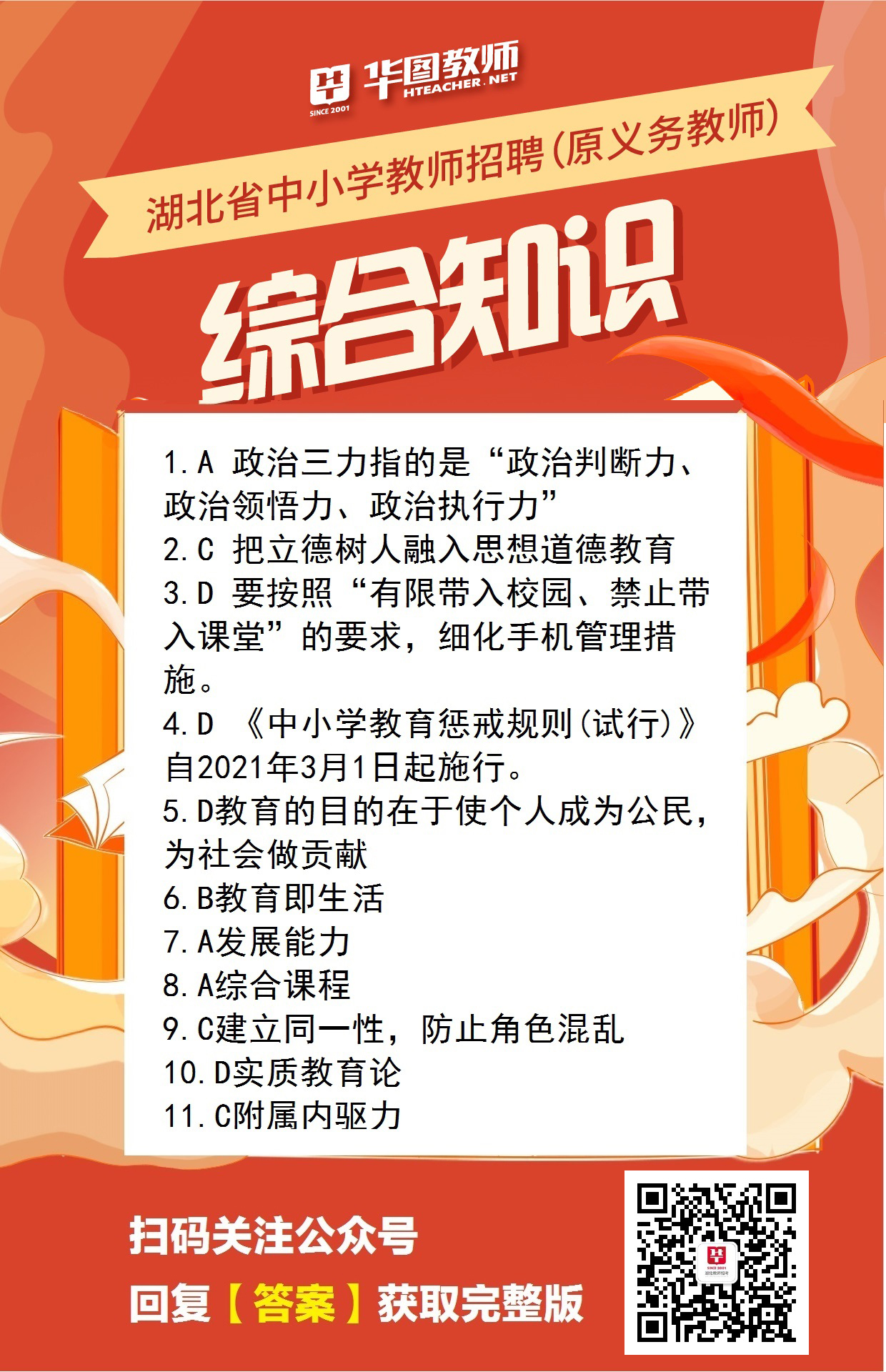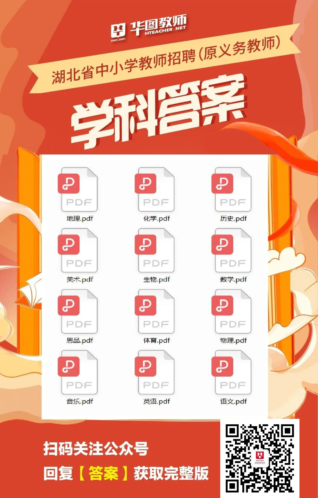 2021湖北中小学教师招聘(原湖北义务教师招聘)笔试已于2021年5月9日举行,笔试参考答案陆续发布中,考生可持续关注本页面,获取更多学科答案!