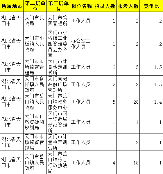 2022年天门事业单位考试共招录205人,今天为报名的第一天,报名人数已达200人,已有30人过审,最高竞争比高达2:1,其中天门市民政局工作人员岗竞争最激烈,目前仍有75岗无人报考!详细报考情况查看下文!